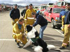 Then came word that Don Tate had died. At the family's request, Dori and Applejack both attended the funeral. Never had the big Newfie's crisis-response skills been so appreciated as by this grieving family who had made his journey with Dori possible. Realizing her beloved partner's career had come full circle, Dori retired Applejack that day. He responded just once more, coming out of retirement in late 2006 to lead a contingent of HOPE teams at a public memorial service for five fallen firefighters. But Dori and even other HOPE members continued to hear kudos from people whom this very special Newfie had touched in some way. No doubt, the many memories of Applejack and his magic will linger for a long, long time to come.